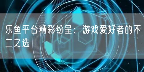 乐鱼平台精彩纷呈:游戏爱好者的不二之选